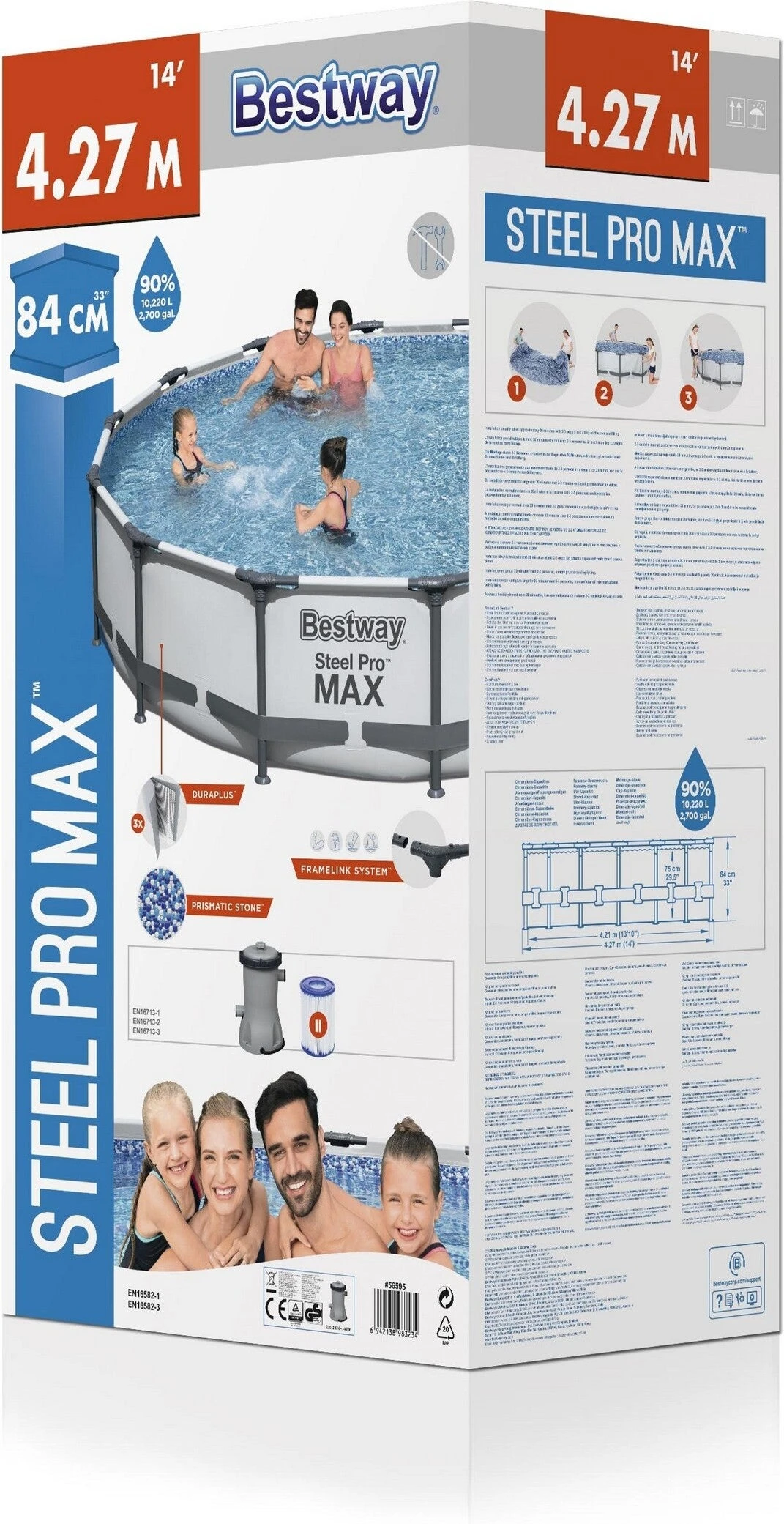 Als het kwik stijgt gaat er niets boven waterpret in eigen tuin! Met dit ronde frame zwembad uit de serie Steel Pro Max van Bestway hoef je dus niet meer weg en neem je gewoon een verkoelende plons in je eigen zwembad. Hoe fijn is dat!