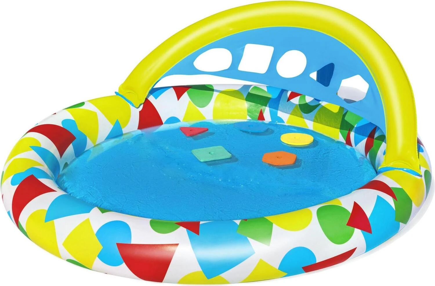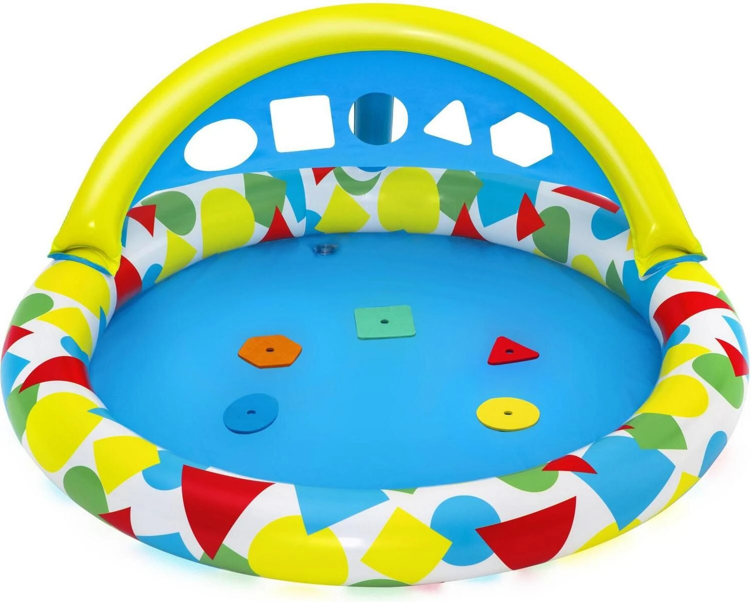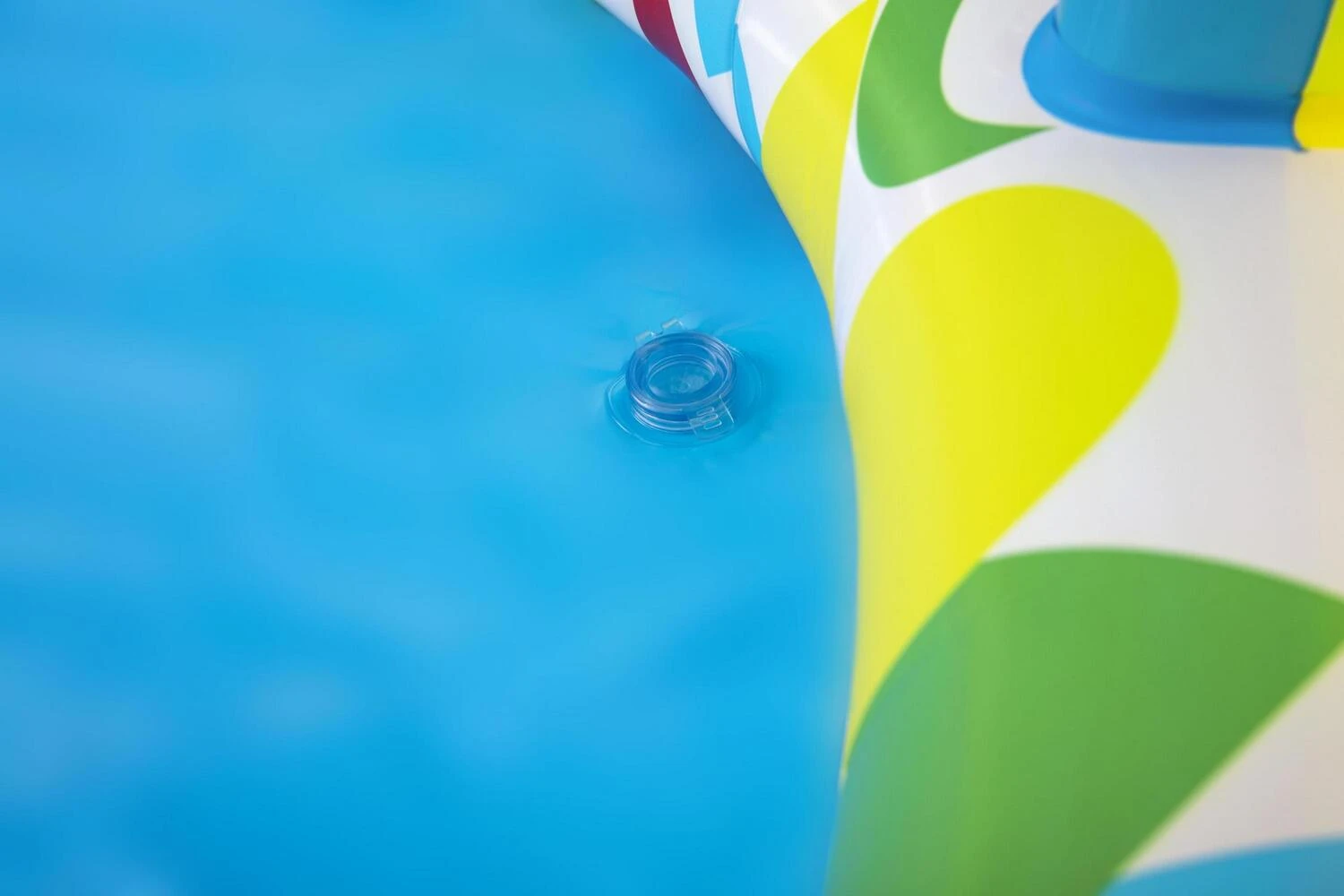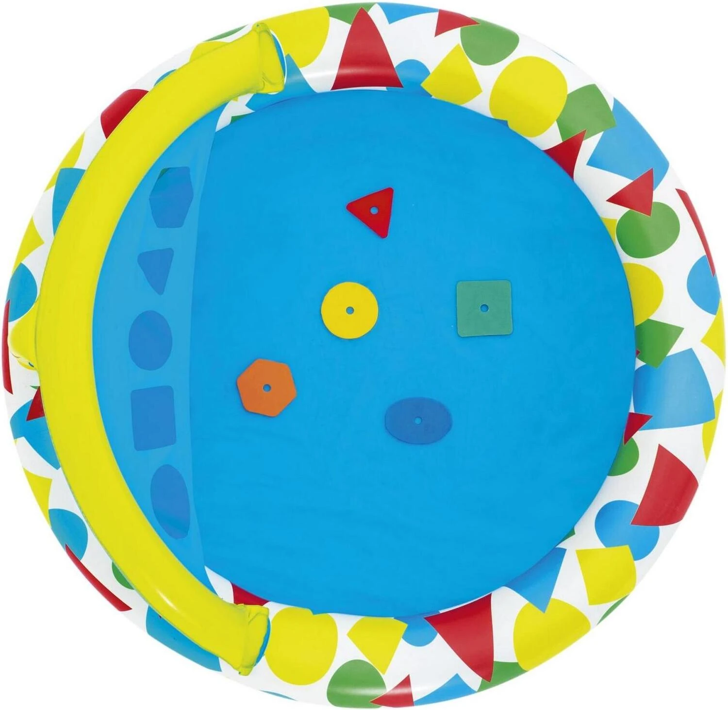 Met dit vrolijke Bestway kinderzwembad beleef je gegarandeerd uren speelplezier. Het ovale kinderbad heeft een leerzaam aspect door een opblaasbaar vormenspel, inclusief 5 foamen vormen. Dit leerzaam aspect zorgt voor het verbeteren van de oog-hand coördinatie, balans en kennis van vormen en kleuren. De verwijderbare splash mat op de bodem is te vullen met water voor extra comfort.