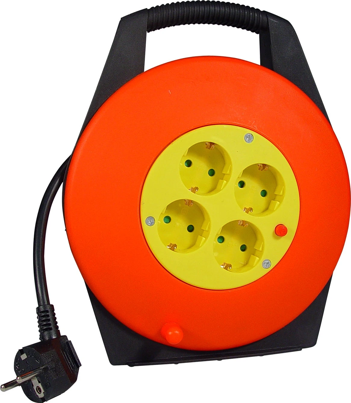 De zwarte Calex kabelhaspel heeft een vier geaarde aansluiting. Door het handvat is hij gemakkelijk mee te nemen. De kabellengte bedraagt 10mtr.