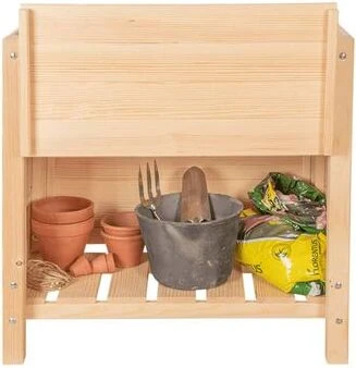 Een stabiele en stevige houten bak, die alles biedt om ongestoord te kunnen tuinieren. Deze verhoogde plantenbak biedt een comfortabele werkhoogte om je rug te ontlasten wanneer je planten oppot of snoeit. Het onderschap biedt ruimte voor potten, gereedschap en zelfs brandhout. Tegenwoordig wordt een verhoogde plantenbak ook gebruikt als decoratie om een lege plek in de tuin op te fleuren. Hij kan worden gevuld met lege en gevulde potten, decoratieve tuinartikelen en nog veel meer! De kweekbak heeft een lengte van 78,8 cm bij een breedte van 40,6 cm en een hoogte van 78 cm.