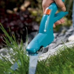 Met de GARDENA Accu Grasschaar ComfortCut met Buxusmes kunnen gazonranden gemakkelijk en nauwkeurig worden afgesneden. De accuschaar kan voor uiteenlopende toepassingen worden gebruikt, omdat hij is uitgerust met een gras- en buxusmes en een struikmes. Hij ligt perfect in de hand dankzij de ergonomische handgreep.