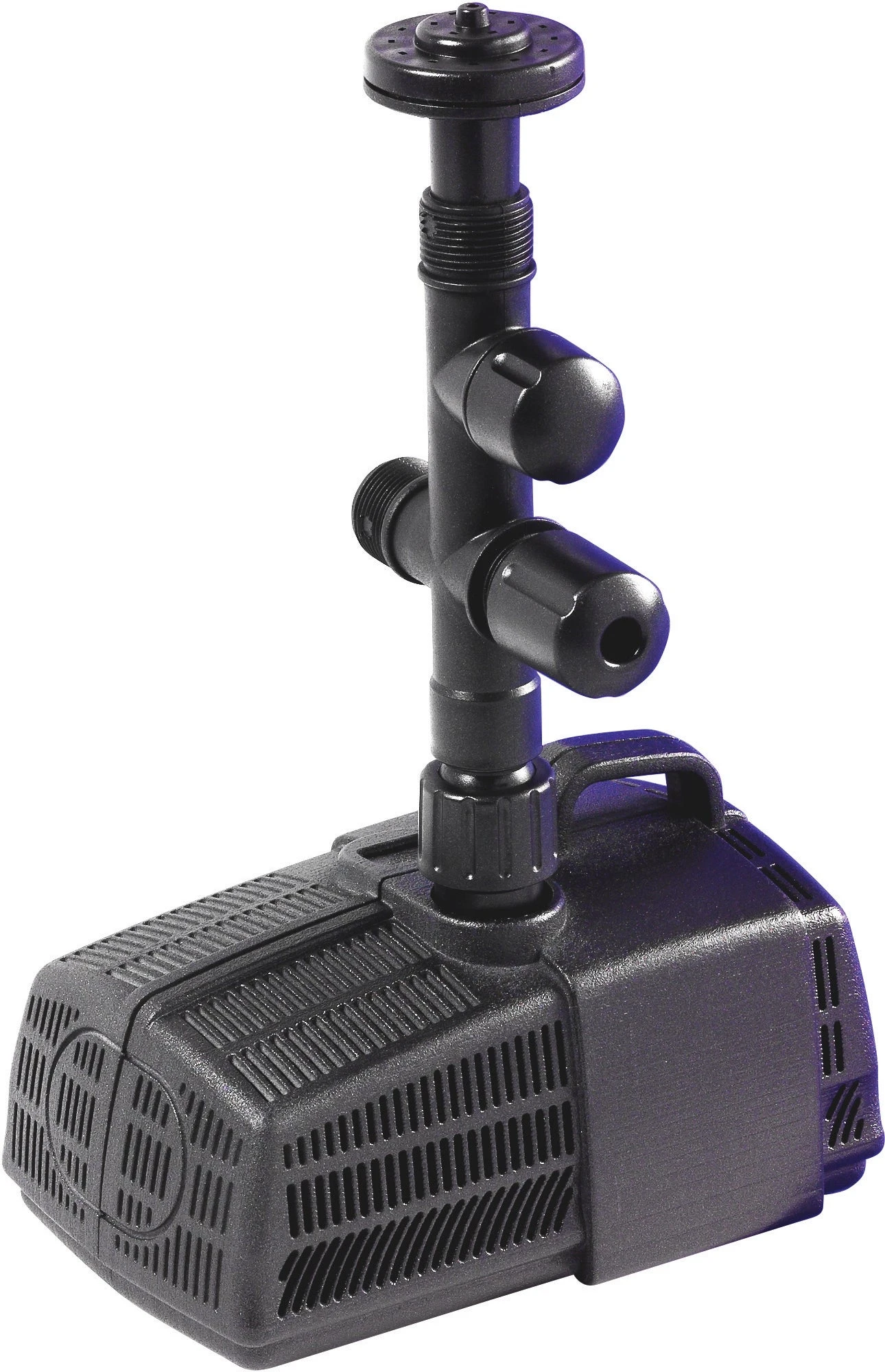 Fonteinpomp Cascade van Hozelock zorgt voor een decoratief sproeibeeld in de vijver en het aansturen van een waterval of waterornament. De aanblik en het geluid van stromend water verbetert elke vijver. Deze pomp wordt standaard geleverd met 3 verschillende sproeikoppen voor een fontein met 2 trappen, 3 trappen of een waterbel. De maximale doorstroming is 4000 liter per uur, de maximale opvoerhoogte is 1.6 meter en de maximale breedte van de waterval is 30 cm.