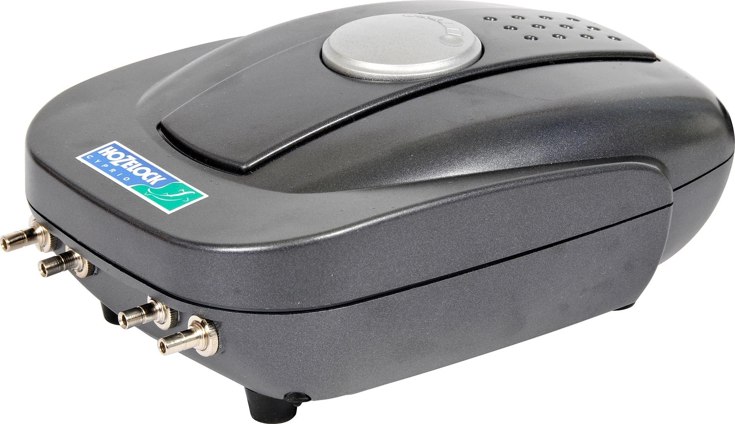 De set bestaat uit een luchtpomp met een capaciteit van 640 liter per uur, 10 meter luchtslang, 4 luchtstenen en 4 terugslagventielen. Deze luchtpomp is heeft een verbruik van 8 watt, is geschikt voor buiten gebruik en beschikt over 4 luchtuitlaten en een stroomkabel van 3 meter lengte. De maximale werkdiepte voor deze pomp is 1,2 meter. Op Hozelock luchtpompen is een garantietermijn van 2 jaar van toepassing.