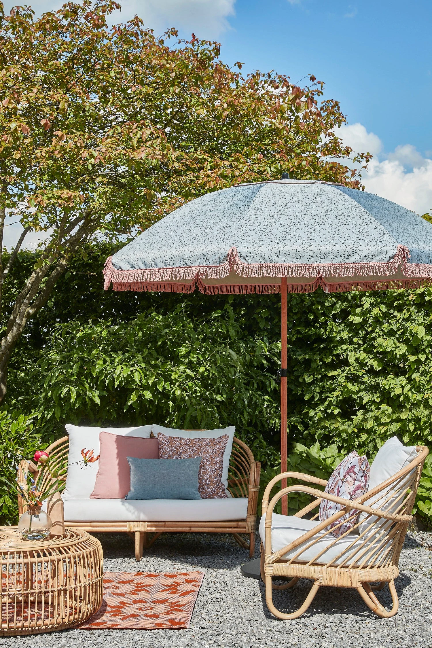 Ga voor een vrolijke sfeer in de tuin met de Siggy parasol van In the Mood Collection. De parasol weet met zijn kleuren elk terras of balkon direct op te fleuren! Hij is versierd met oud roze franjes aan de rand en het vrolijke printje zorgt voor een speelse touch.