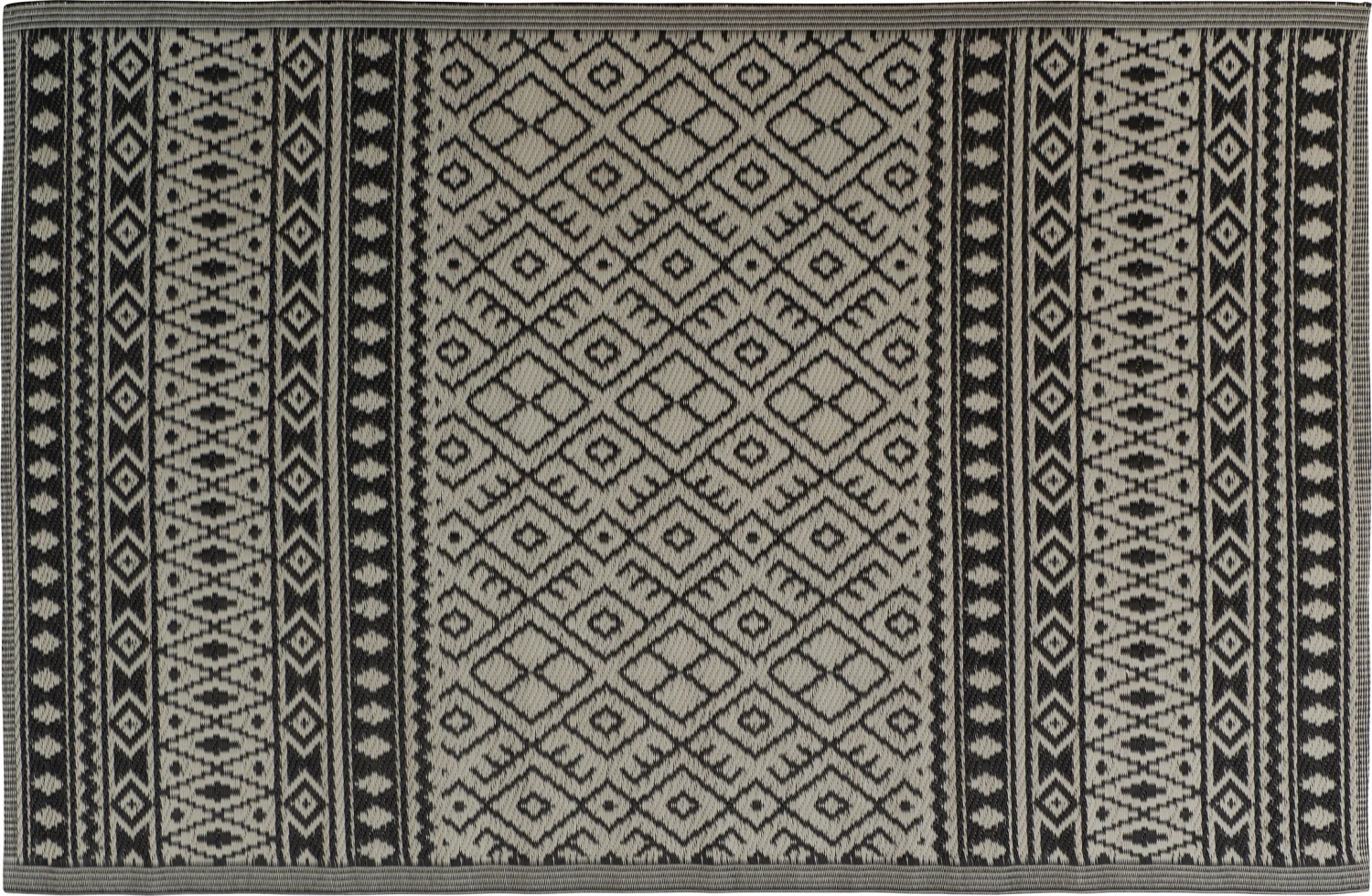 Dit buitenkleed van Intratuin fleurt jouw zithoek onmiddellijk op! Het buitenkleed is niet alleen een echte sfeermaker binnenshuis, maar haalt vooral ook de gezellige sfeer van jouw woonkamer naar buiten. Doordat het kleed weerbestendig is, kun je het kleed gerust buiten laten liggen. De speelse geometrische vormen in een zwarte en crème kleur maken het kleed helemaal af. Het buitenkleed is verkrijgbaar in verschillende kleuren.