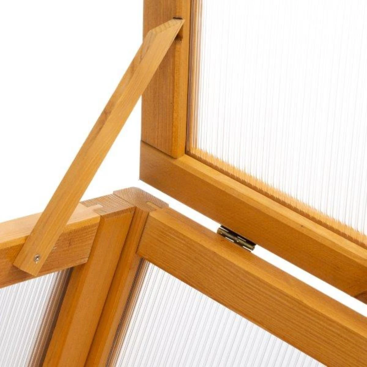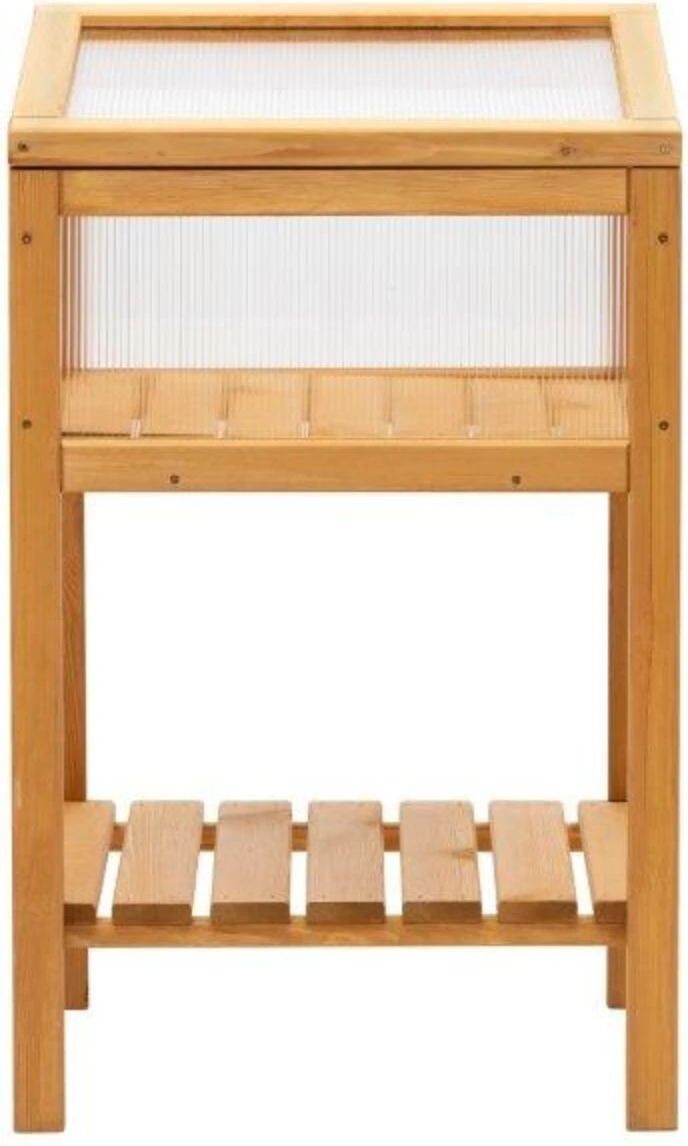 Kweek nu je eigen groente of fruit buiten op je balkon, terras of tuin. Met deze handige kweektafel kweek je op ideale werkhoogte stekjes uit tot grotere groente, fruitplanten en kruiden. Of het nu tomatenplanten zijn, sla of basilicum, deze moestuin op poten is groot genoeg om meerdere kruiden en planten in te kweken. De kweekbak bestaat uit een houten broeikas met dubbelwandig glazen deksel en zijkanten. Extra plank. Deksel openen/sluiten met drie verschillende openingsniveaus. Grenenhout gedipt behandeld met niet-giftige houtbeits op waterbasis. De kweekbak heeft een lengte van 59 cm bij een breedte van 52 cm en een hoogte van 96 cm.