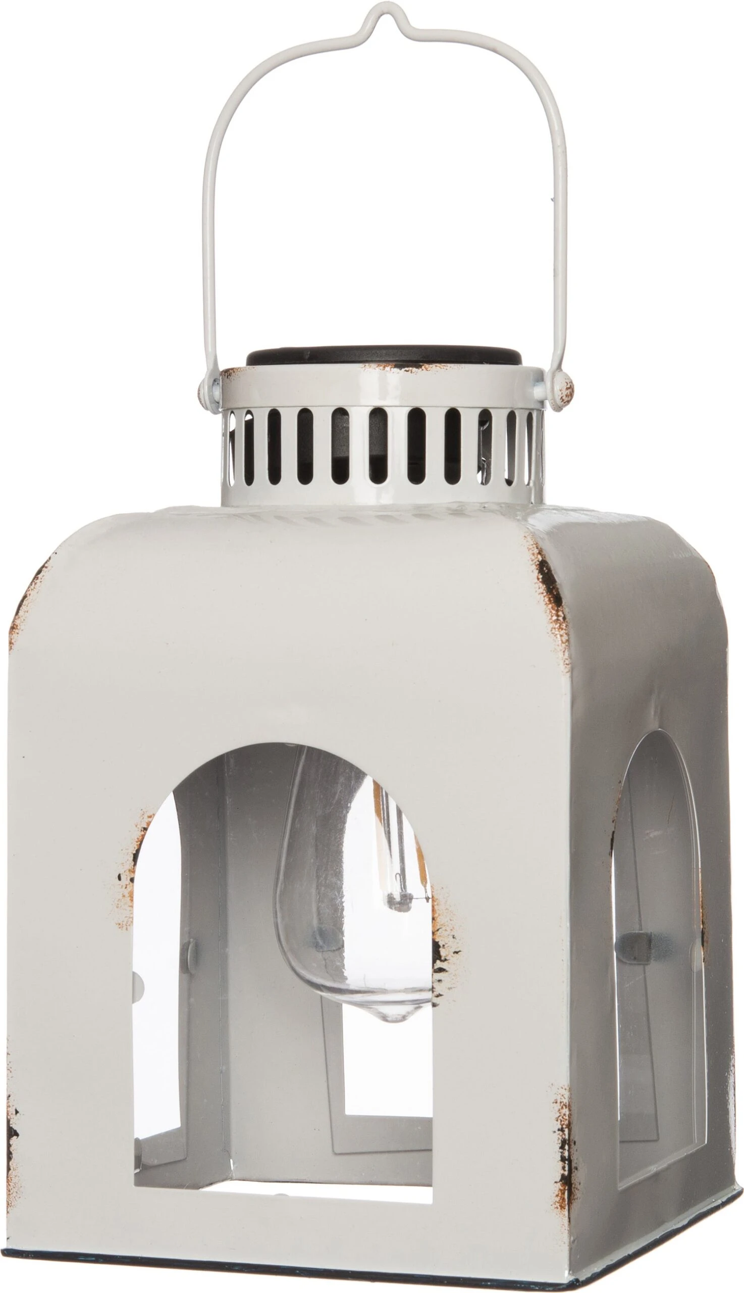 Deze stijlvolle solar hanglamp van metaal is geschikt als sfeer- of oriëntatieverlichting voor buiten. De geïntegreerde Intratuin LED lamp werkt op zonne-energie. Bij zonsondergang gaat de lamp automatisch branden. Ideaal voor in je tuin, op het balkon of bij de vijver. De lamp is draadloos en eenvoudig op te hangen. Plaats de lamp bij voorkeur op een zonnige plek. Het aantal branduren is afhankelijk van het aantal uren dag- en zonlicht. In de zomermaanden is het aantal branduren een stuk langer dan in de wintermaanden. De afmetingen zijn 15,5 x 15,5 x 23,5 cm.