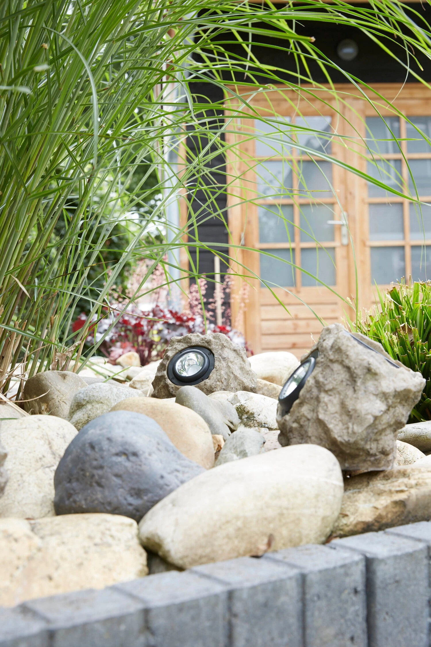 Met de Luxform Intelligente Solar Himalaya rotslamp merk je overdag niet dat er een lamp in de tuin staat. De rots is aan de onderzijde voorzien van een geheim vakje, waar o.a. een sleutel in opgeborgen kan worden. De lamp is gemaakt van een composietmateriaal dat eruitziet als een steen en heeft een lichtopbrengst van 30 lumen. De kop van de rotslamp is draai- en kantelbaar, zodat het op de juiste plek warm wit licht afgeeft.