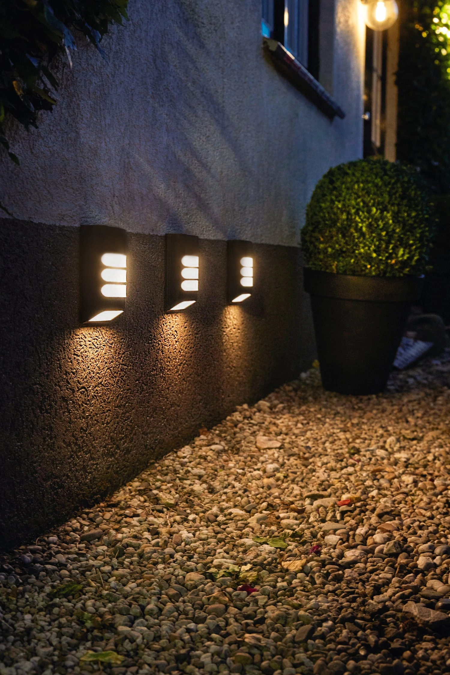 Moderne, functionele wandlamp met een warme uitstraling en uniek design. De Solar Intelligent Hybride wandlamp Indiana op zonne-energie past echt in elke tuin-, balkon- en dakterrasstijl en biedt een geweldig lichtaccent in elke buitenomgeving! De warm witte LED met een lichtopbrengst van 15 lumen zorgt voor felle verlichting. In de doos vind je alle materialen waarmee je de kunststof lamp eenvoudig en veilig op steen en hout kunt monteren. Doordat de lamp licht naar voren en naar beneden afgeeft, kunnen planten en bloemen ook van bovenaf prachtig belicht worden!