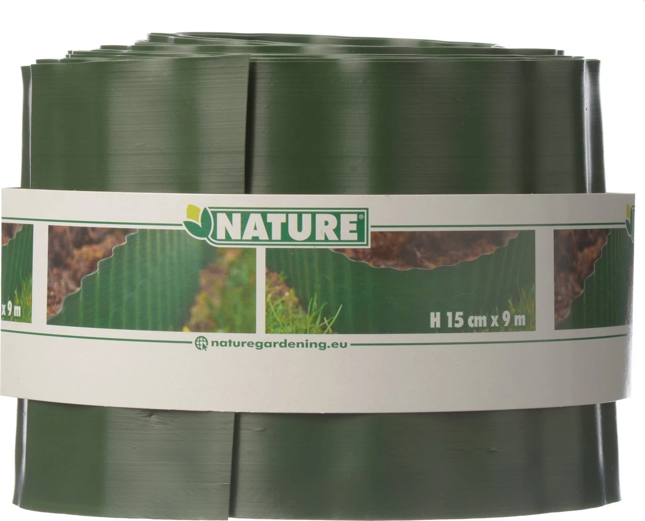 Nature grasrand gemaakt van groen polyethyleen. Ideaal voor het begrenzen van planten en bloemperken. Afmeting H15cmx9m.
