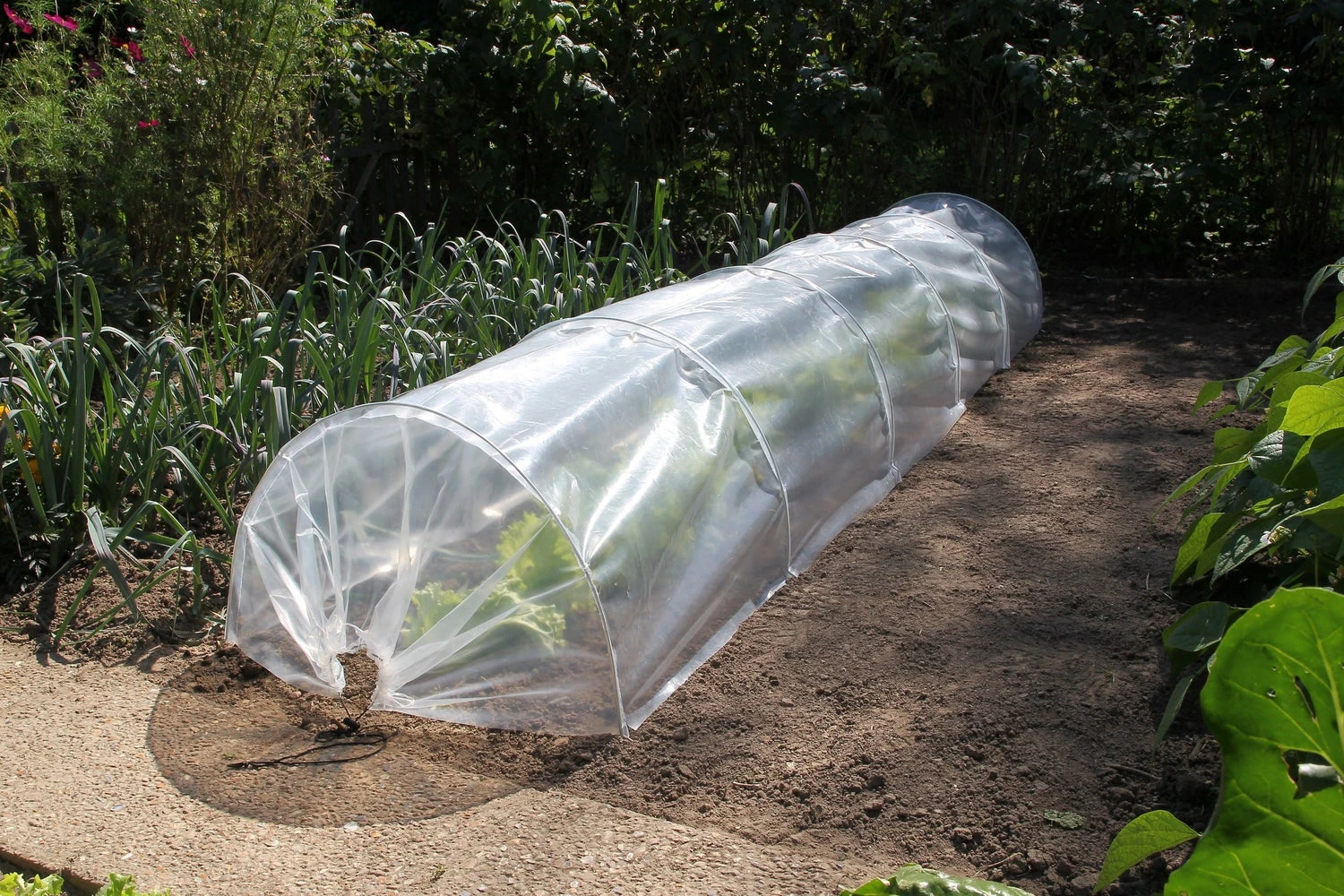 Duo Tunnel 2 in 1 tuintunnelset bestaande uit transparant folie (polyethyleen) met een dikte van 100 μ, een anti-insectennet (mazen van 2 x 4 mm) en 6 tunnelbogen. Breedte tunnel: 60 cm, hoogte tunnel: 45 cm, lengte tunnel: 300 cm.Eenvoudig te installeren. Wordt over de zaailingen in de grond gestoken. Beschermt tegen insecten en vogels, maar ook tegen wind, zon, nachtvorst en uitdroging.