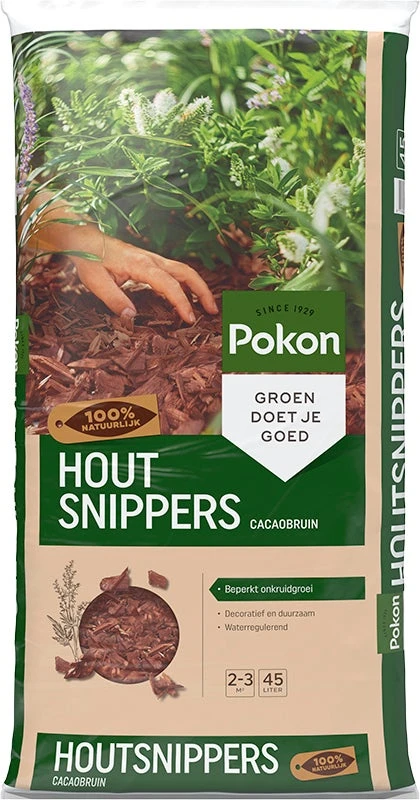 45 liter aan Pokon Houtsnippers is voldoende voor de bedekking van 2 tot 3 m2. Strooi jaarlijks houtsnippers bij voor een optimaal resultaat.