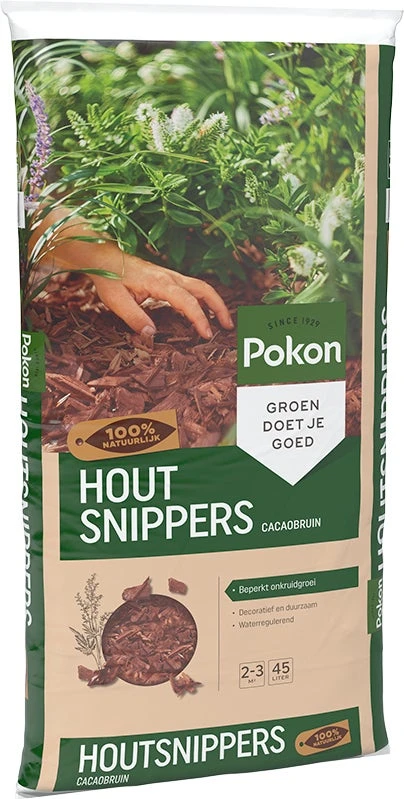 Wanneer je op zoek bent naar een duurzame bodembedekker zijn de Pokon Houtsnippers Cacaobruin een aanrader. Deze houtsnippers zijn 100% natuurlijk en worden gemaakt van hout dat afkomstig is uit PEFC beheerde bossen.