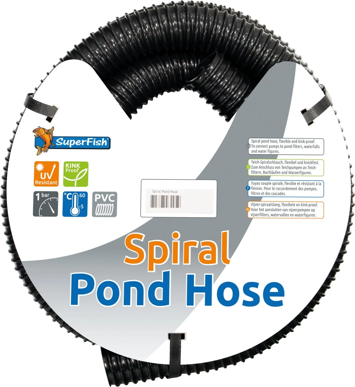 Deze speciale, versterkte spiraalslang van Superfish kan niet knikken en is geschikt voor het aansluiten van vijverpompen op vijverfilters, watervallen en waterfiguren. De slang heeft een diameter van 25 mm en is 10 meter lang.