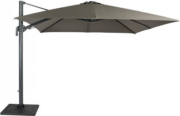 Zweefparasol Banus heeft de afmetingen 300 x 300 x 260 cm en is vierkant van vorm. De parasol heeft een UV-bestendigheid van 50+ en wordt geleverd exclusief parasolvoet en beschermhoes, 2 jaar garantie.