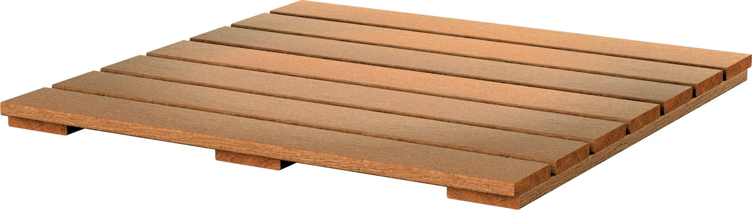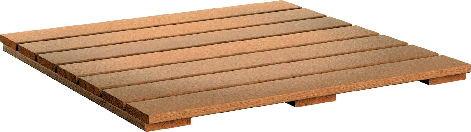 De vlondertegel hardhout glad geschaafd is 2,5 cm hoog, 50 cm breed, 50 cm diep en bestaat uit 3 latten en 7 planken. De planken zijn glad en het hout is geschaafd. De vlondertegel is aan elkaar geschroefd met gegalvaniseerde schroeven. Om corrosie van de schroeven te voorkomen zijn de gaten afgedicht met parafine. Monteer de vlondertegel met zelf borende RVS schroeven.