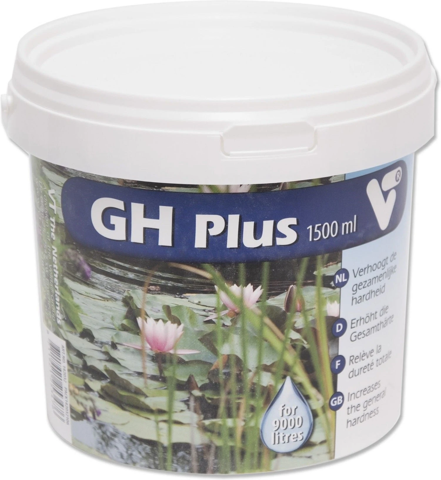 Regelmatige controle van de waterhardheid is dan ook gewenst. GH Plus verhoogt probleemloos de hardheid van het vijverwater. Het werkt snel en vertroebelt het water niet. De verpakking van 1500 ml is voldoende voor 9000 liter vijverwater.