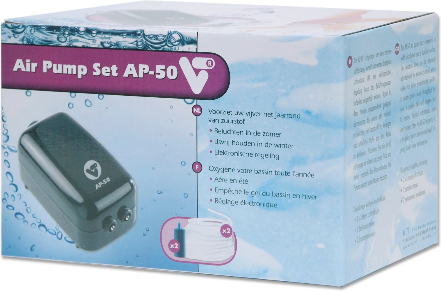 Ondanks de geringe afmetingen heeft de AP luchtpomp een hoge luchtopbrengst. Daarmee is deze pomp bij uitstek geschikt om tuinvijvers het jaarrond te beluchten, van zuurstof te voorzien en schadelijke stoffen uit het milieu te verwijderen.